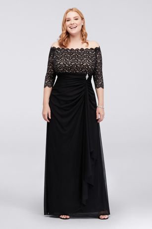 Off The Shoulder Plus Size Dress With Cascade David S Bridal
